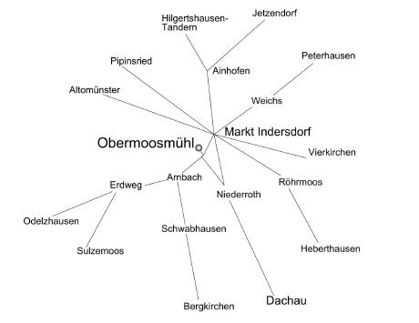 Von Dachau kommend fahren Sie beim Ortsschild Markt Indersdorf links durch das Gewerbegebiet hindurch bis Sie zur Arnbacher Straße kommen, in die Sie links einfahren. Nach 500 m ist rechts die Abfahrt Obermoosmühl.